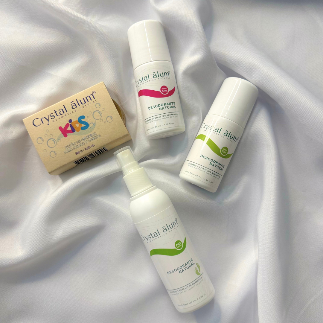 Todos nuestros productos son a base de piedra de alumbre y aceites esenciales, que ayudan a controlar el mal olor, no tapona los poros, no mancha la ropa ni la piel ayudan a controlar la sudoración excesiva, Ideal para las primeras etapas del cuidado de los más pequeños.